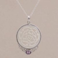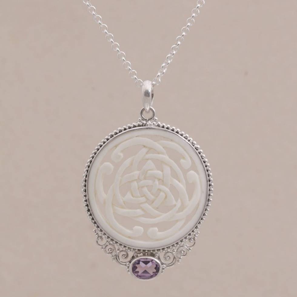 Amethyst Sterling Silver and Bone Pendant Necklace from Bali 'Circle of Power' Item ID: 2671734563