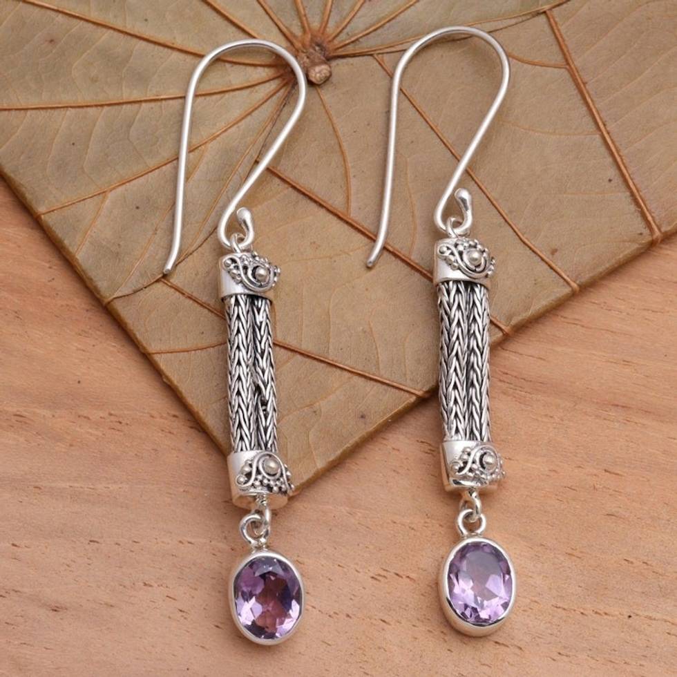 Amethyst Sterling Silver Dangle Earrings 'Bali Birthright' Item ID: 2671699794