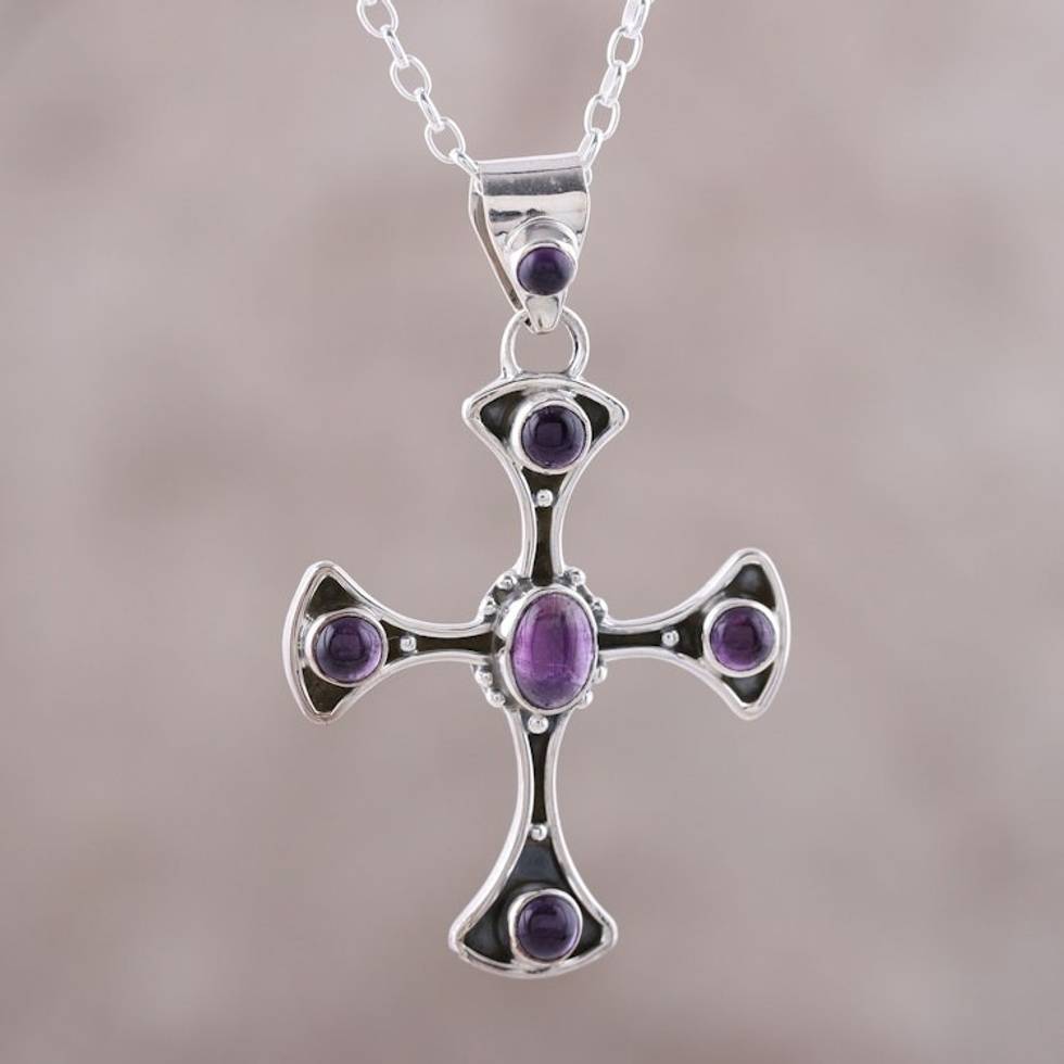 Amethyst Sterling Silver Dot Motif Cross Pendant Necklace 'Beautiful Faith' Item ID: 2671792155