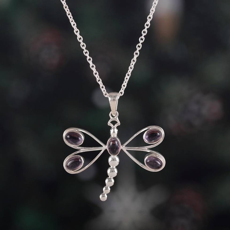 Amethyst Sterling Silver Dragonfly Pendant Necklace 'Violet Dragonfly' Item ID: 2671786600