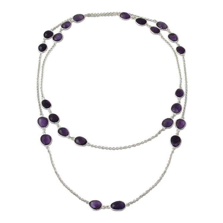 Amethyst Sterling Silver Long Necklace Handmade in India 'Violet Princess' Item ID: 2671618987