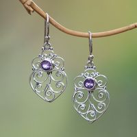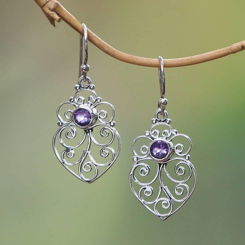 Amethyst Sterling Silver Scrollwork Heart Dangle Earrings 'Enchanted Heart' Item ID: 2671736273