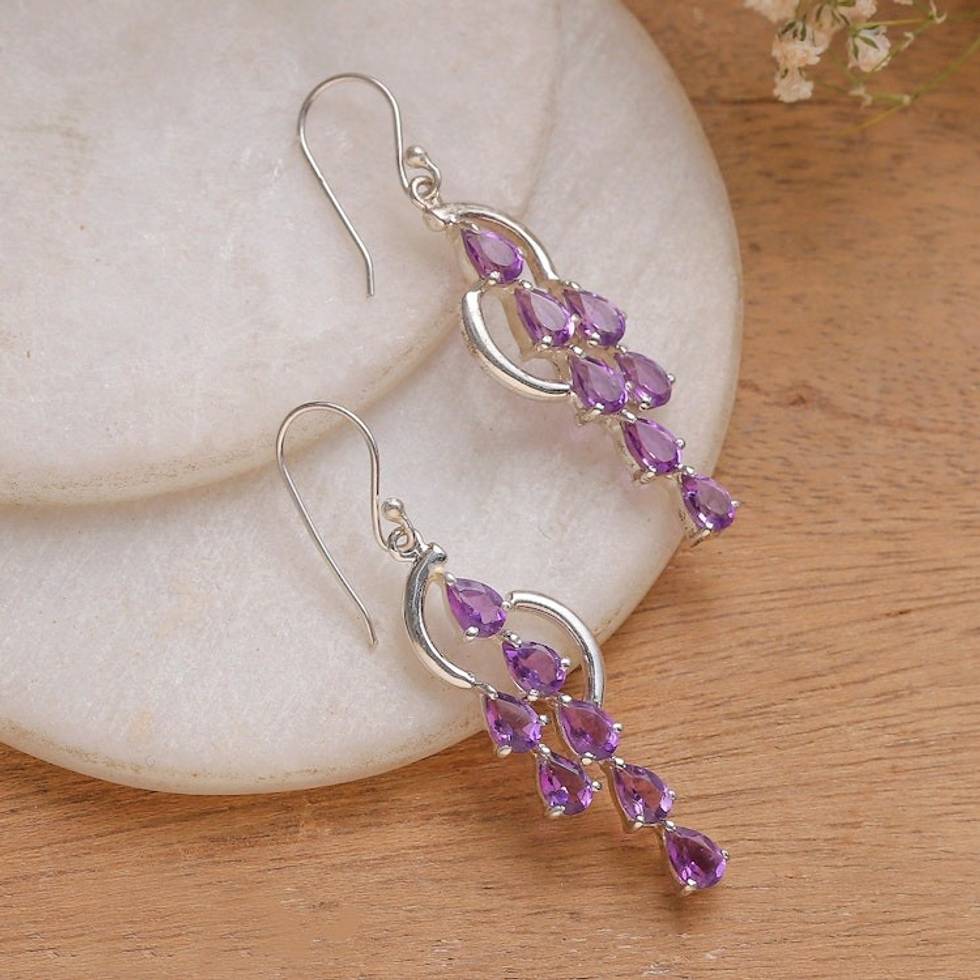 Amethyst Sterling Silver Waterfall Earrings from India 'Cascading Purple' Item ID: 2671781457