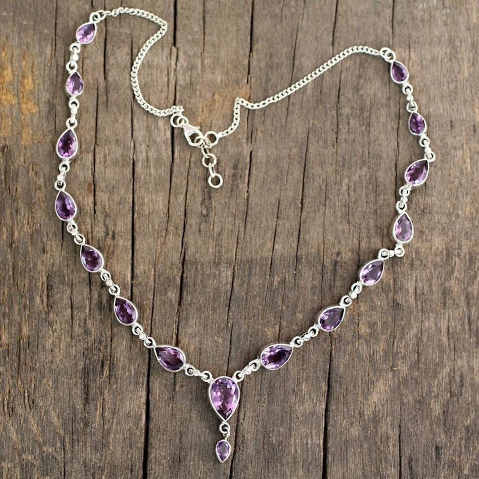 Amethyst Sterling Silver Y Necklace from India 'Precious Tears' Item ID: 2671619838