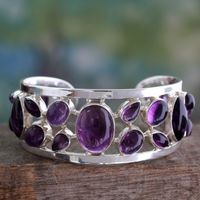 Amethyst Studded Sterling Silver Cuff Bracelet from India 'Purple Harmony' Item ID: 2671620145