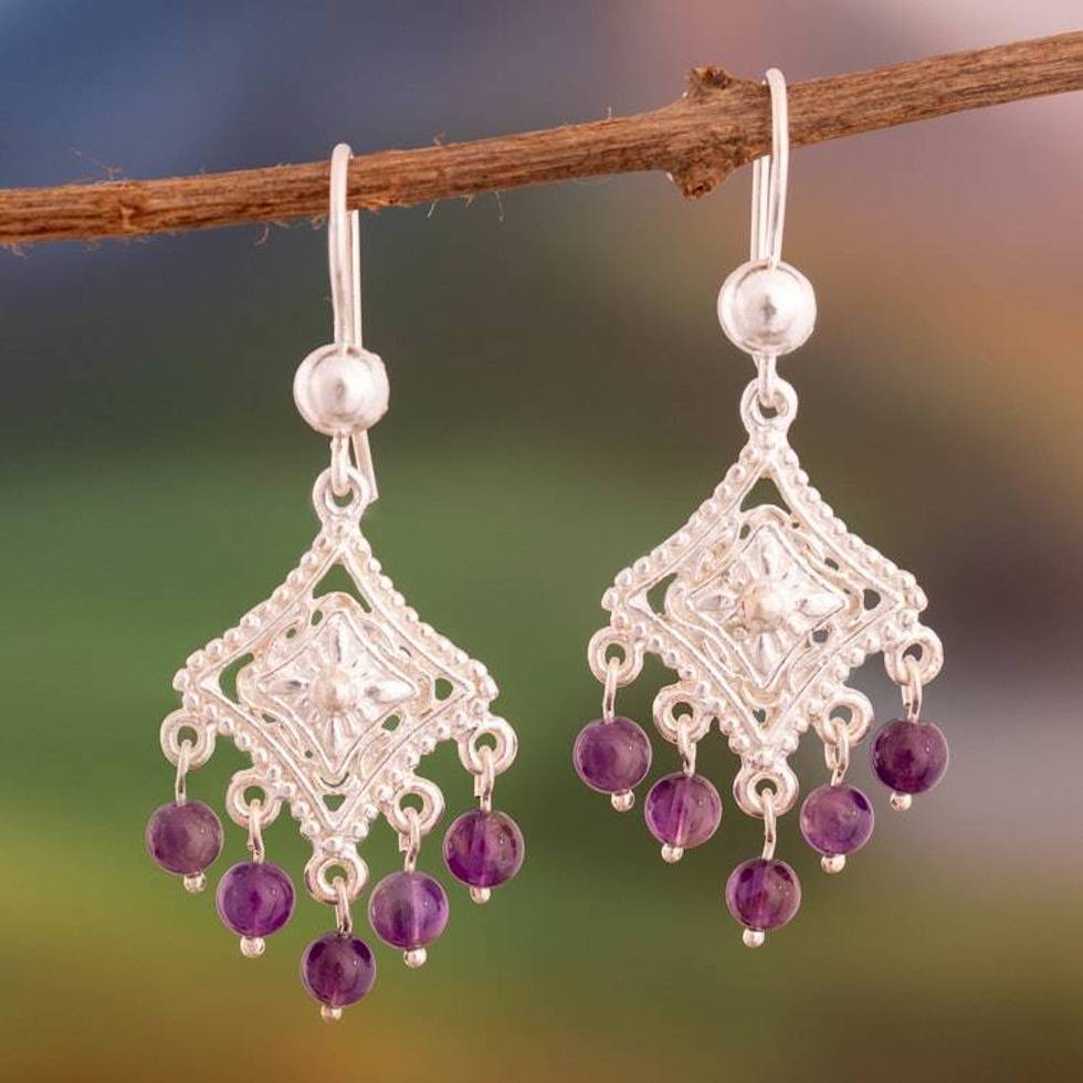Andean Artisan-Made Birthstone Amethyst Chandelier Earrings 'Abbey Breeze' Item ID: 2676641449