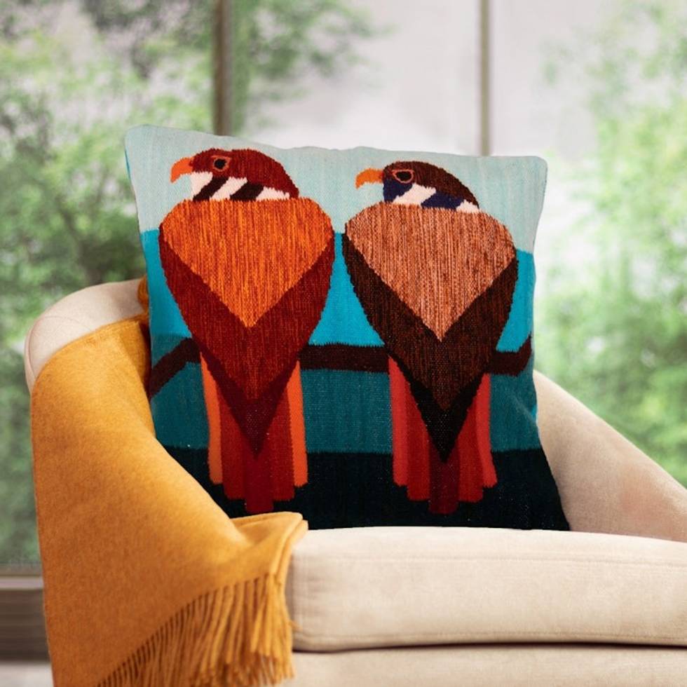 Andean Falcon-Themed Wool Cushion Cover Handwoven in Peru 'Andean Falcons' Item ID: 2671697907