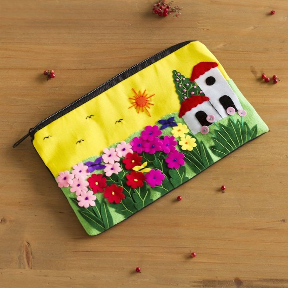 Andean Folk Art Cotton Applique Cosmetic Case 'Sunny Afternoon' Item ID: 2671695451
