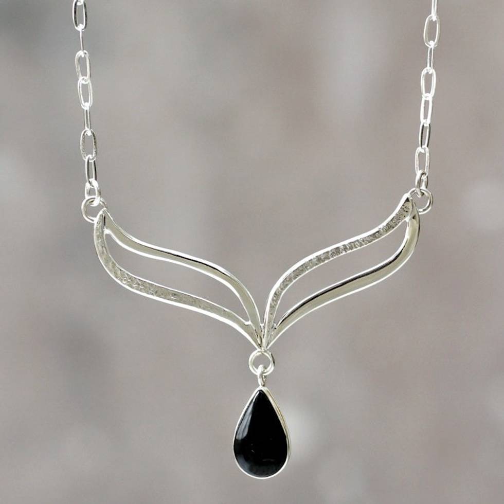 Andean Silver Necklace Set with Black Obsidian 'Wings of Midnight' Item ID: 2671820335
