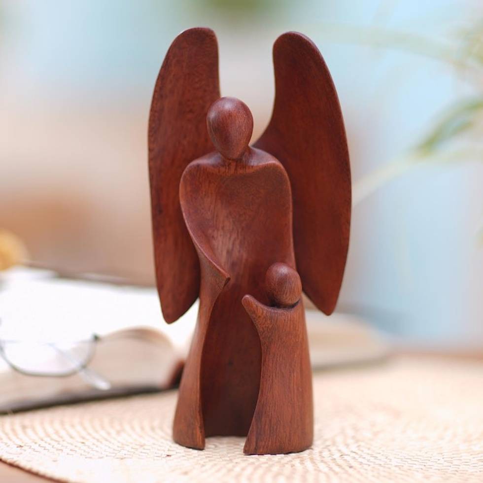 This is both beautifully carved and conceptually loving. To be blessed and protected by angels spiritual or terrestrial make a wonderful gift for a loved one or yourself. Thank you Nyoman Sudan.