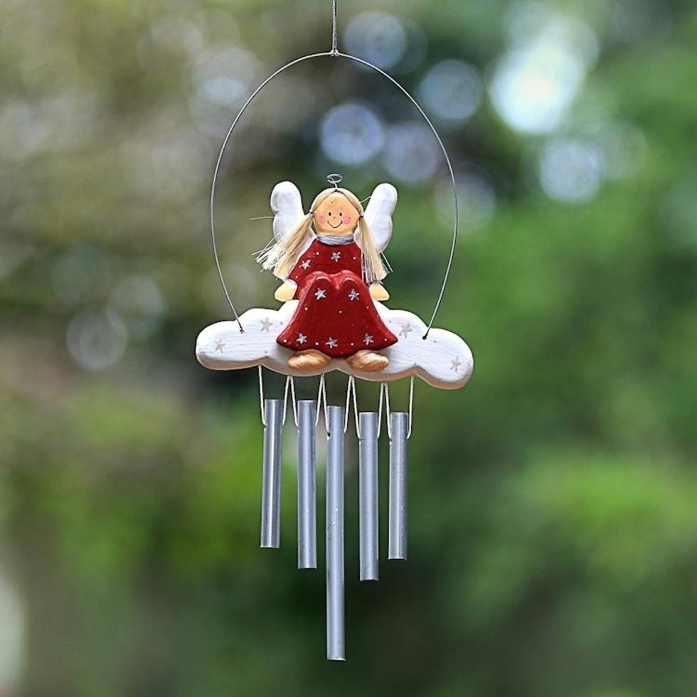 Angel-Themed Wood Wind Chimes in Red from Bali 'Angel Tune in Red' Item ID: 2671736703