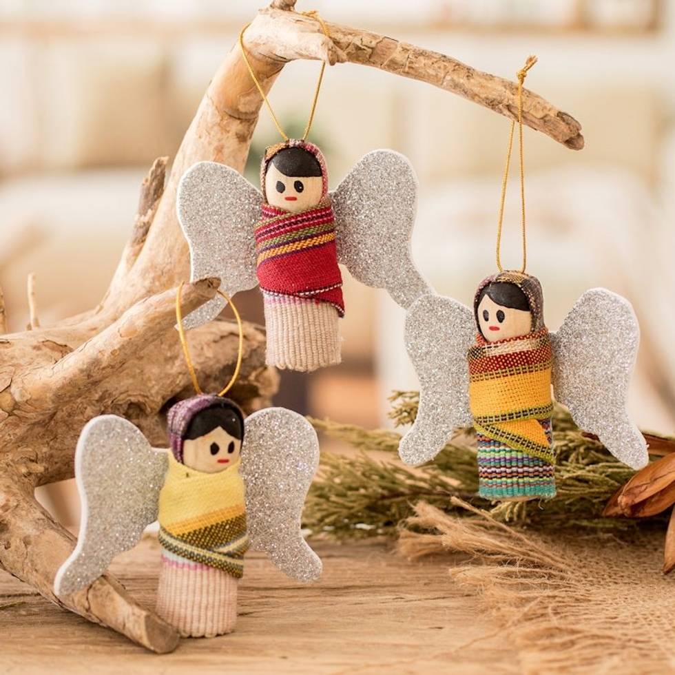 Angel Worry Doll-Themed Wood and Cotton Ornaments Set of 3 'Worry-Free Christmas' Item ID: 2671769073