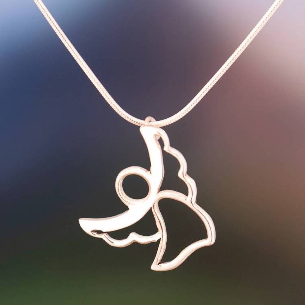Angelic Protection Sterling Silver Pendant Necklace 'Angel Beside Me' Item ID: 2676641570