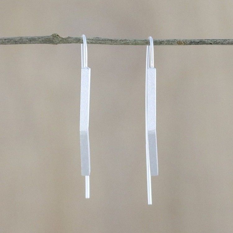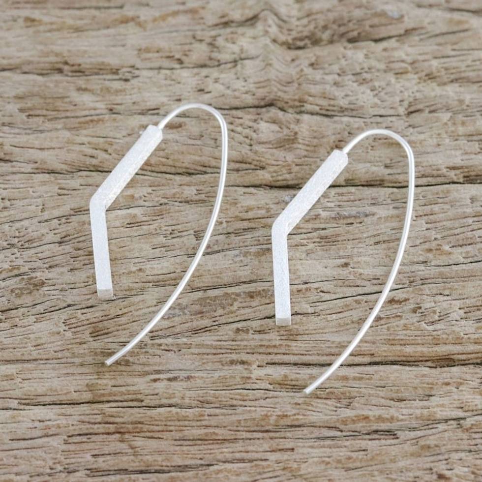 Angular Sterling Silver Drop Earrings from Thailand 'Bent Pillars' Item ID: 2671801435