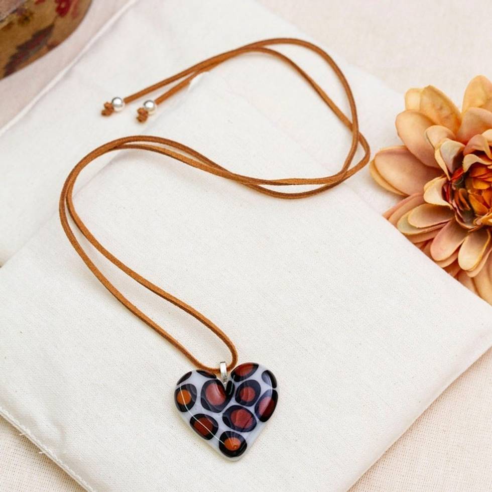Animal Print Heart-Themed Fused Art Glass Pendant Necklace 'My Bold Love' Item ID: 2671798513