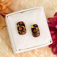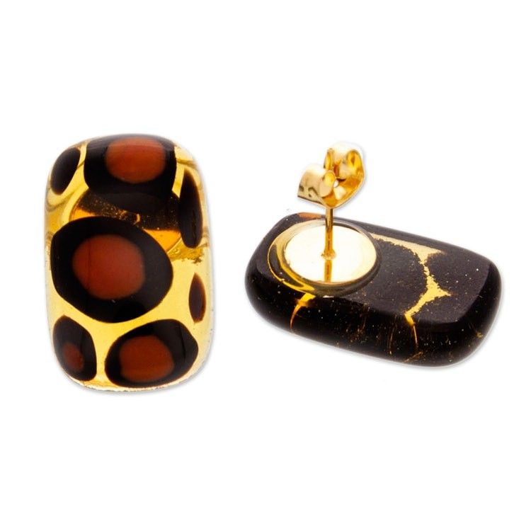 Animal Print Rectangular Fused Art Glass Button Earrings 'Exotic Animal Print Geometry' Item ID: 2671798464