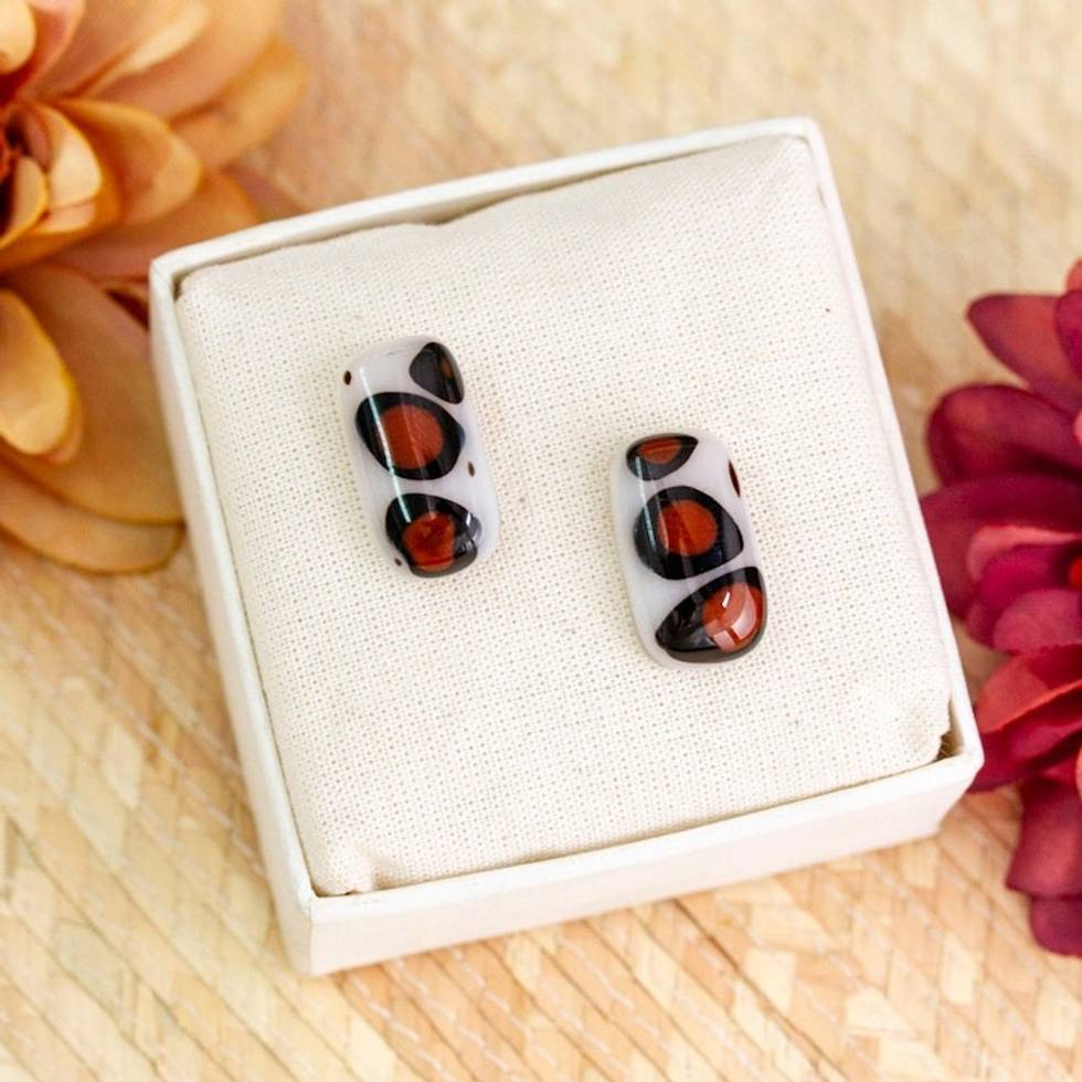 Animal Print-Themed Rectangular Art Glass Button Earrings 'Animal Print Geometry' Item ID: 2671798522
