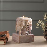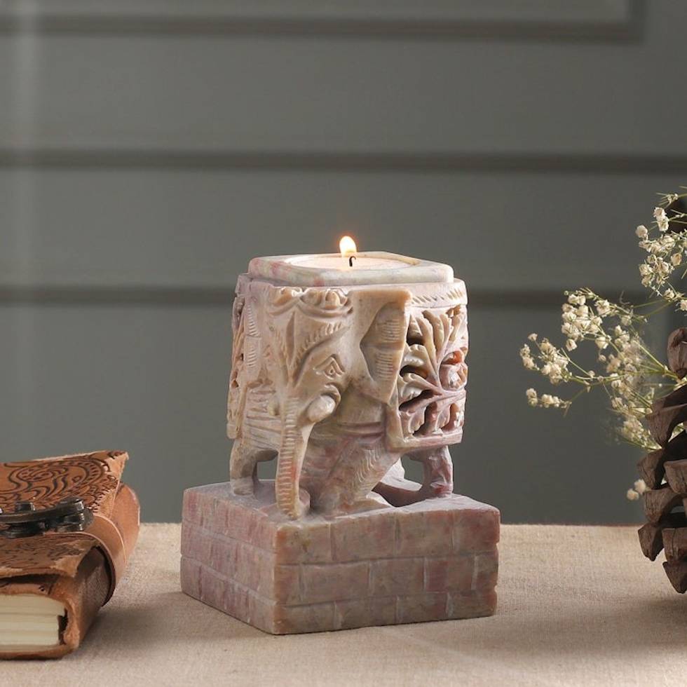 Animal Themed Candle Holder Soapstone Elephant Pair Set 'Floral Elephants' Item ID: 2671795045
