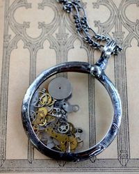 Antique Pocket Watch Crystal Pendant With Loose Moving Watch Parts Necklace Item ID: 2675264232