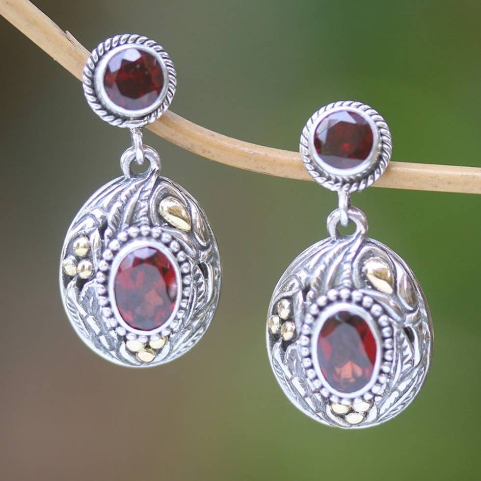 Antique Style Garnet and Sterling Silver Earrings from Bali 'Historical Beauty' Item ID: 2671747286