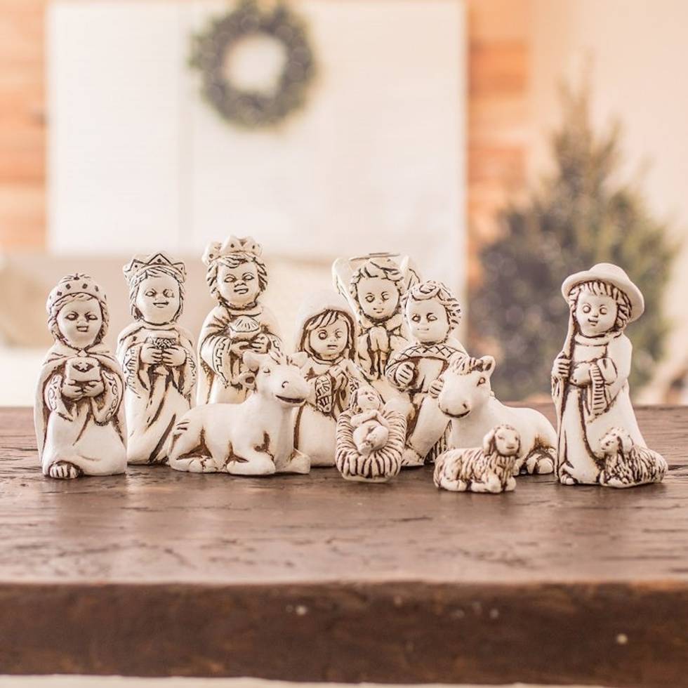 Antique Style White Ceramic Nativity Scene 11 Pieces 'Antique El Salvador Bethlehem' Item ID: 2671626886