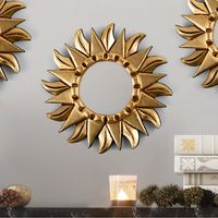 Antiqued Round Bronze Gilded Wood Wall Mirror with Sun Motif 'Bright Sun' Item ID: 2669904339