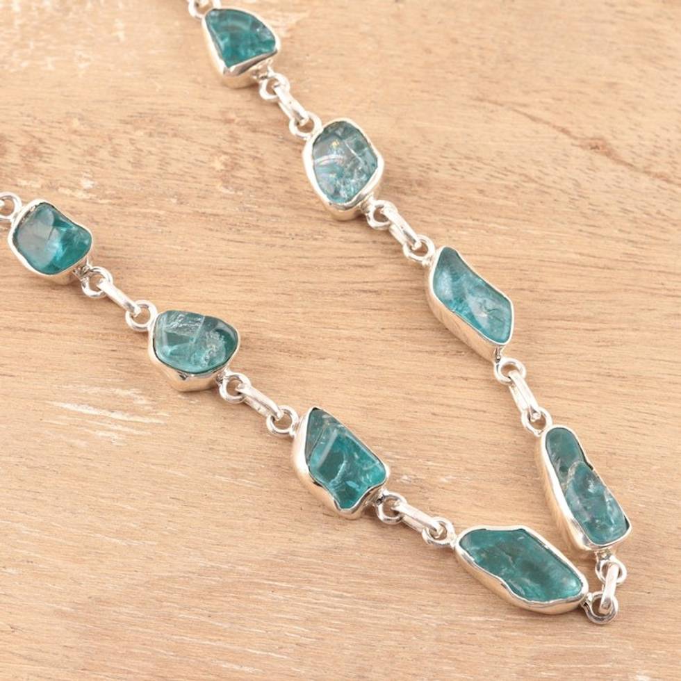 Apatite Nugget Link Necklace Crafted in India 'Sea Nuggets' Item ID: 2671789918