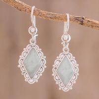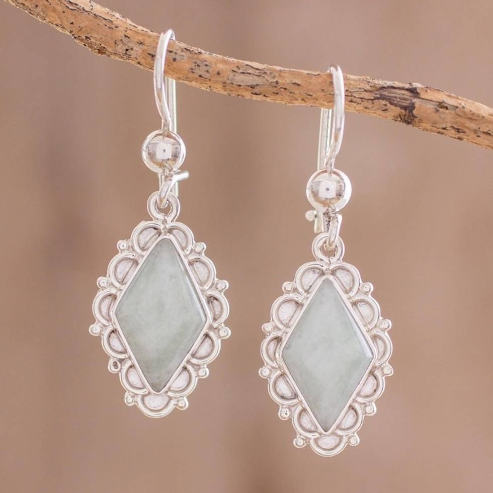 Apple Green Jade Diamond-Shaped Earrings from Guatemala 'Apple Green Diamond Dahlia' Item ID: 2671777439