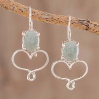 Apple Green Jade Heart Drop Earrings from Guatemala 'Jade Beat' Item ID: 2671777437