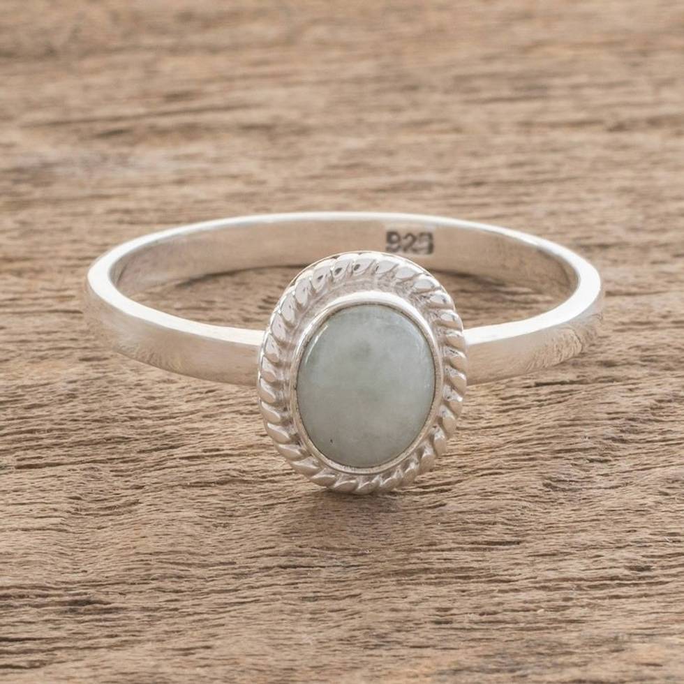 Apple Green Jade Solitaire Ring Crafted in Guatemala 'Oval Beauty' Item ID: 2671778487
