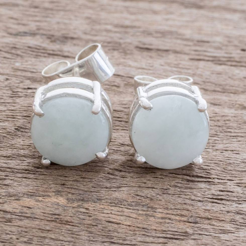 Apple Green Jade Stud Earrings from Guatemala 'Maya Sweets in Apple Green' Item ID: 2671776988
