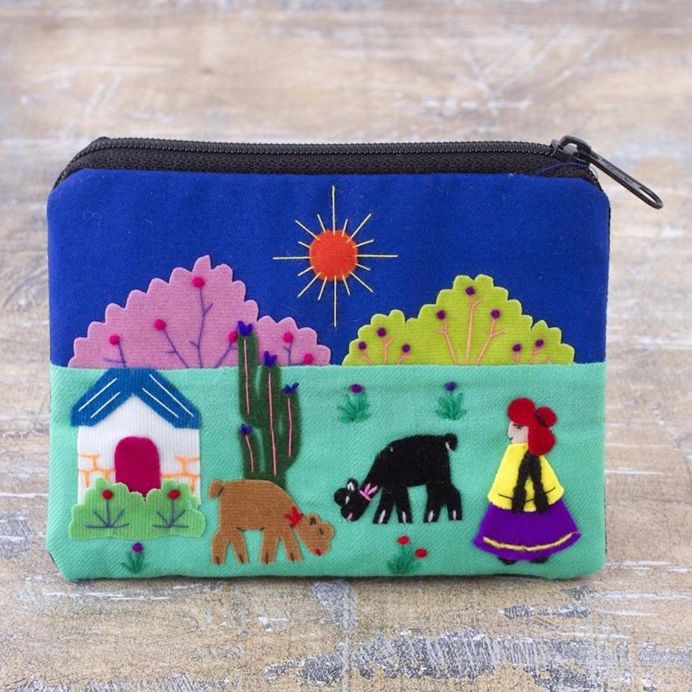 Applique Multicolor Coin Purse from Peru 'Andean Sunshine' Item ID: 2669908635