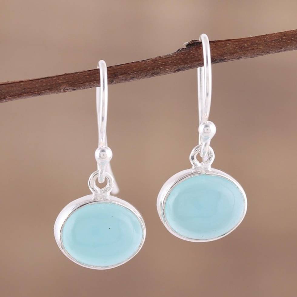 Aqua Blue Chalcedony and Silver Dangle Earrings 'Aqua Aurora' Item ID: 2669924336