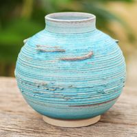 Aqua Blue Small Ceramic Vase from Thailand 'Asian Aqua' Item ID: 2669897623