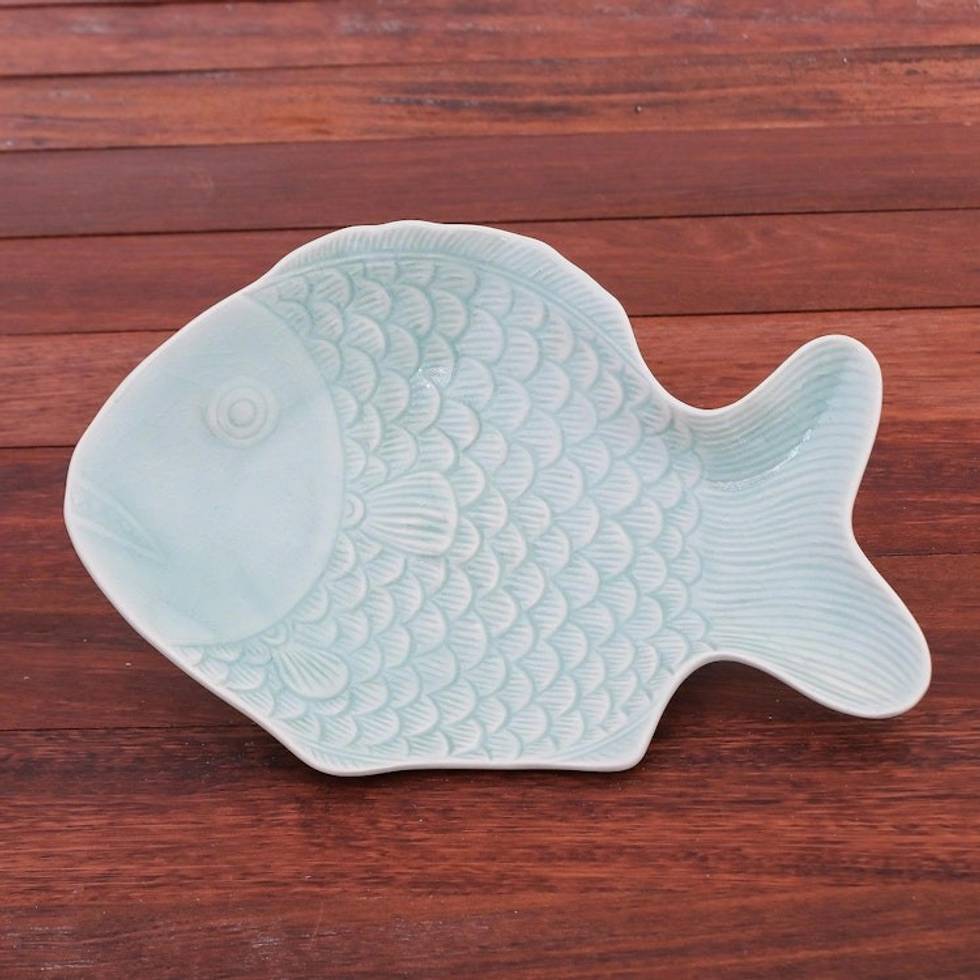 Aqua Celadon Ceramic Fish Serving Plate 'Mae Ping Fish in Aqua' Item ID: 2671799650