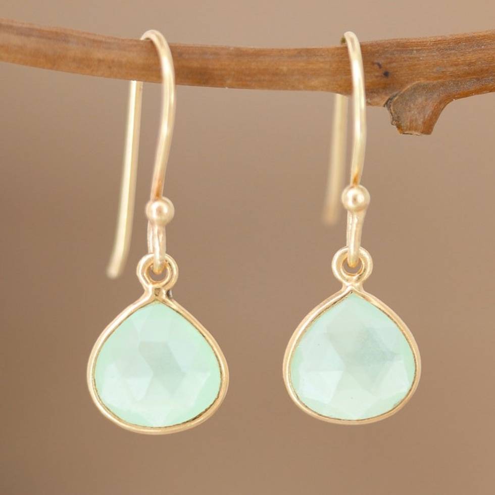 Aqua Chalcedony 22k Gold Plated Earrings 'Cool Stream' Item ID: 2671787228