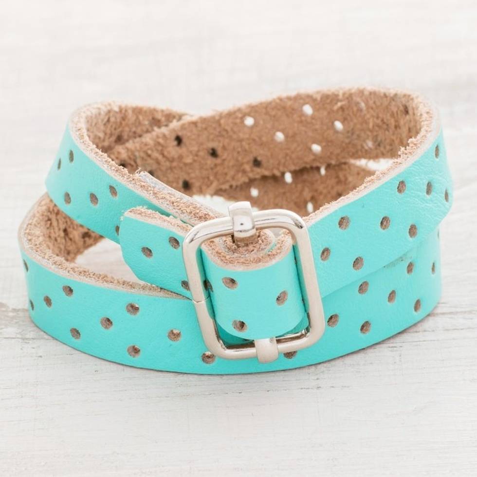 Aqua Leather Wrap Bracelet from Costa Rica 'Bold Illusion in Aqua' Item ID: 2671778668