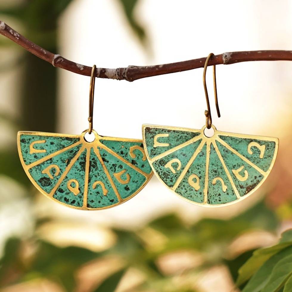 Armenian Alphabet Brass Dangle Earrings with Antique Finish 'Armenian Alphabet' Item ID: 2669941829