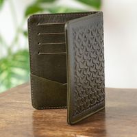 Army Green Embossed Leather Passport Holder from Mexico 'Deep Olive Traveler' Item ID: 2671808427