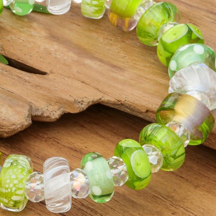 Art Glass and Crystal Beaded Stretch Bracelet in Light Green 'Dazzling Spell' Item ID: 2671796738
