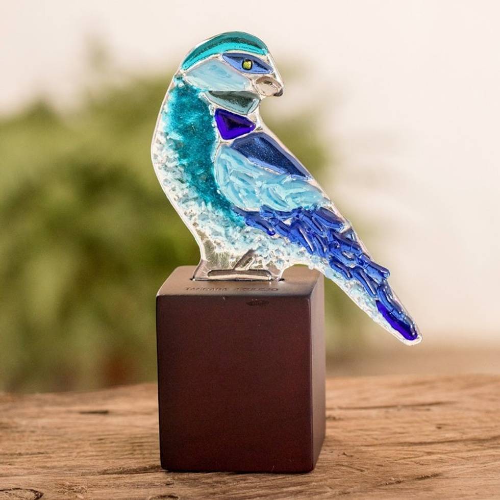 Art Glass Blue Bird Sculpture from El Salvador 'Blue-Grey Tanager' Item ID: 2671776928