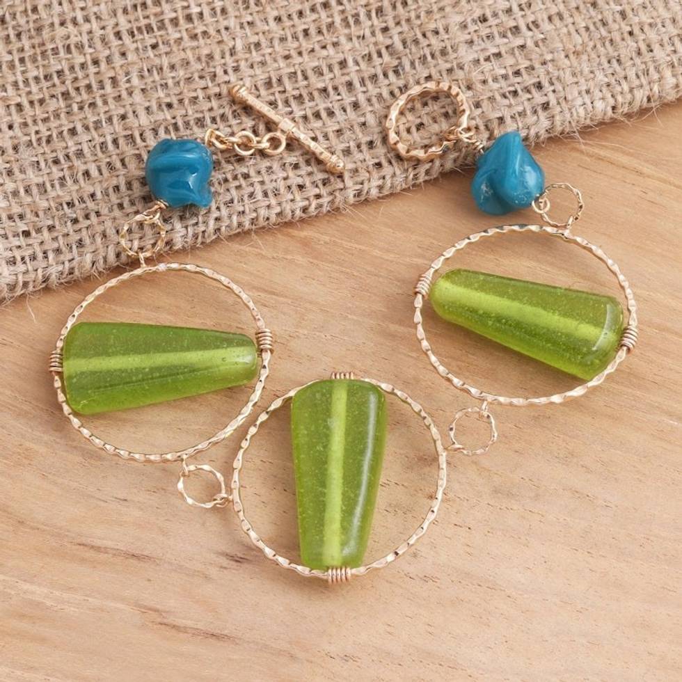 Art Glass Bracelet in 18k Gold Plated Silver 'Java Jungle Trek' Item ID: 2671745704