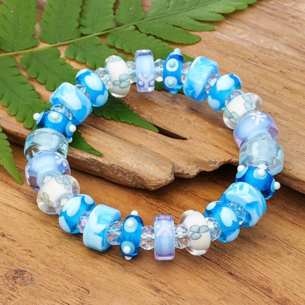 Art Glass Crystal Beaded Stretch Bracelet in Light Blue Hue 'Celestial Spell' Item ID: 2671796875