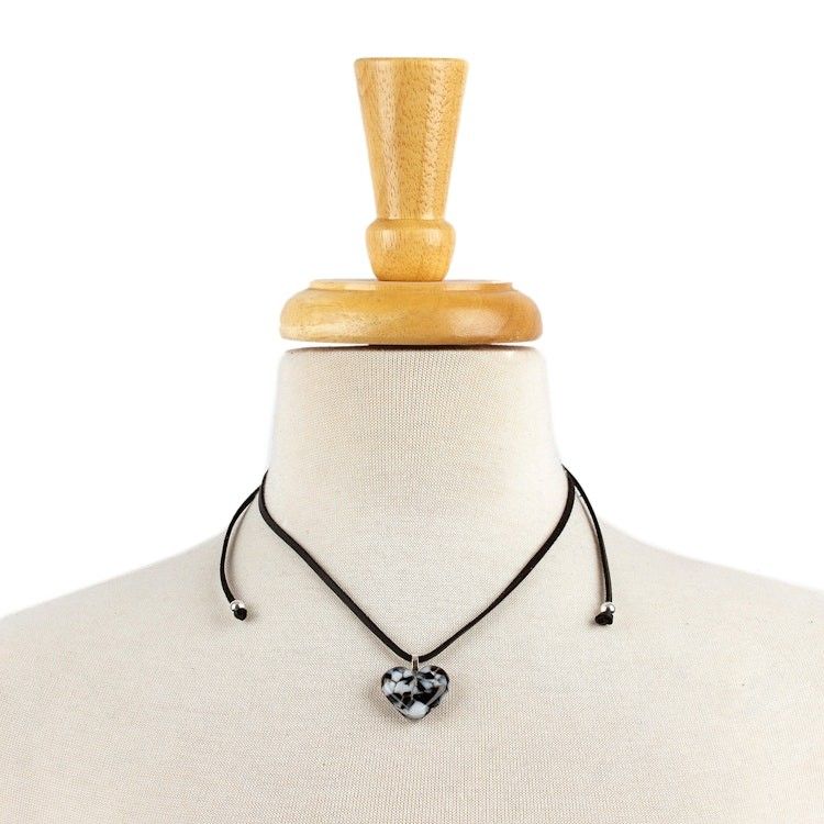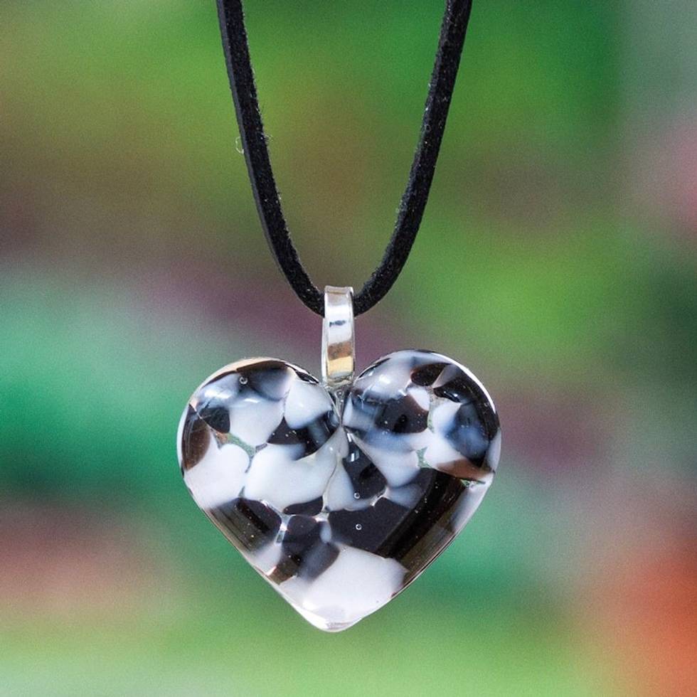 Art Glass Heart-Shaped Pendant Necklace in Black and White 'My Luxurious Love' Item ID: 2671807513