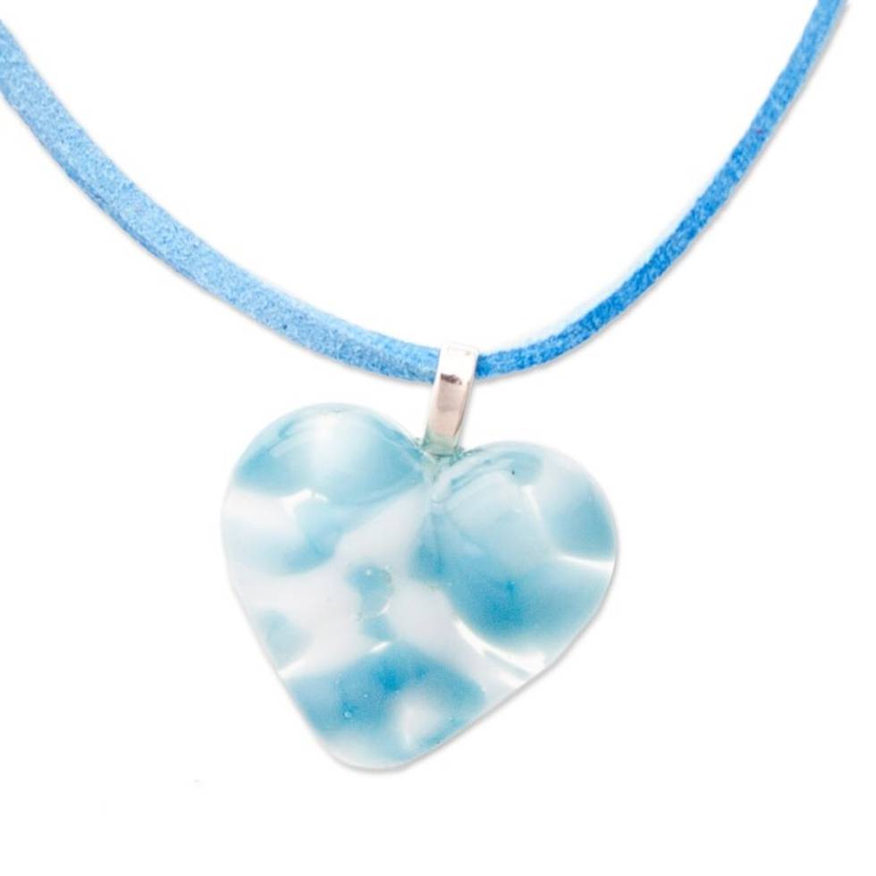 Art Glass Heart-Shaped Pendant Necklace in Blue and White 'My Heavenly Love' Item ID: 2671807458