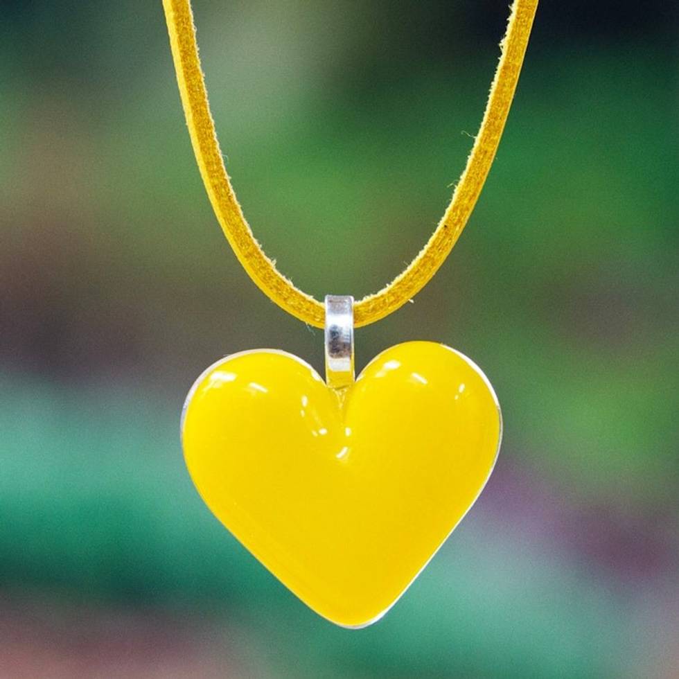Art Glass Heart-Shaped Pendant Necklace in Goldenrod Yellow 'My Goldenrod Love' Item ID: 2671639181