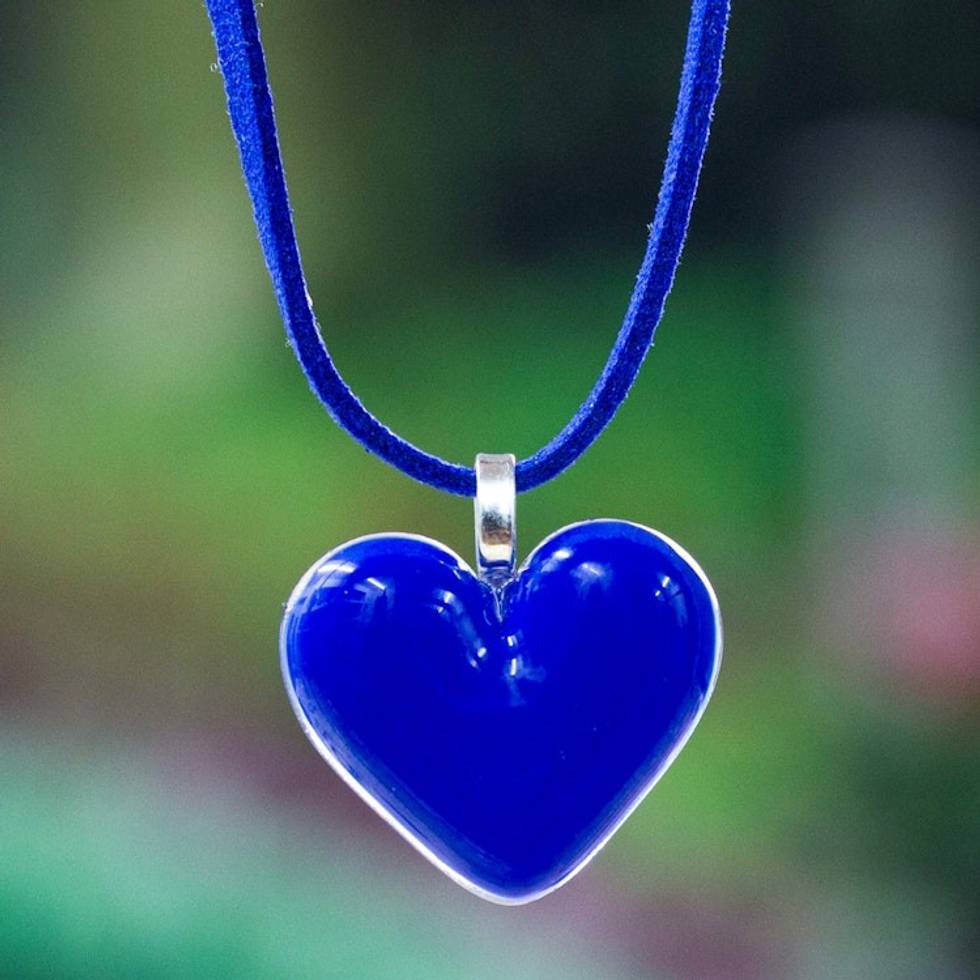 Art Glass Heart-Shaped Pendant Necklace in Lapis Blue 'My Lapis Love' Item ID: 2671807295