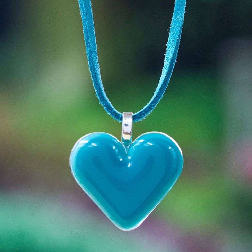 Art Glass Heart-Shaped Pendant Necklace in Teal 'My Teal Love' Item ID: 2671807342