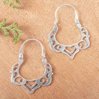 Art Nouveau Style Sterling Silver Hoop Earrings 'Nouveau Mexico' Item ID: 2676646693