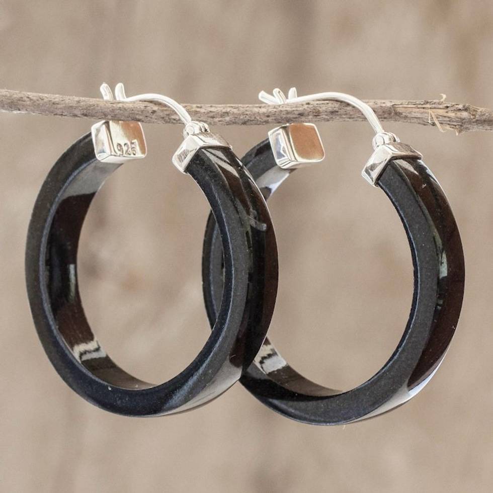 Artisan Black Jade Hoop Earrings 'Synchronicity in Black' Item ID: 2669934777